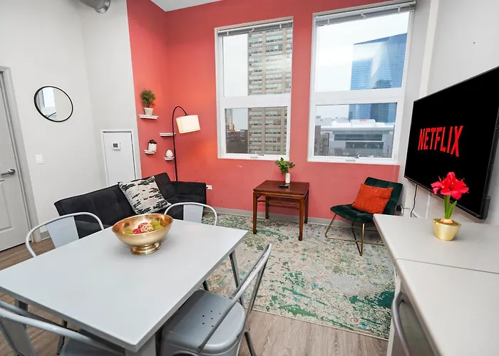 Dieses Apartment bietet seinen Gästen die Annehmlichkeiten von Selbstversorgern, wie eine voll ausgestattete Küche und einen Essbereich. Diese Unterkunft liegt nur 100 m von der Bushaltestelle McCormickPlace Transportation Center und nicht weit entfernt von der U-Bahn-Station Cermak-McCormick Place.